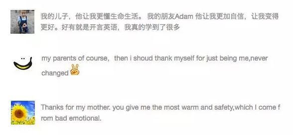 Make a small speech about what you're thankful for: 每人说段话,说自己感恩什么